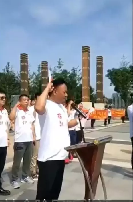 網傳影片顯示,上百名身穿「錦州燒烤」的民眾在廣場集合,在一名領誓大漢帶領下大聲握拳宣誓:「我們錦州燒烤人,聽黨話,跟黨走!堅決響應市委市政府號召,不忘初心,牢記使命!」