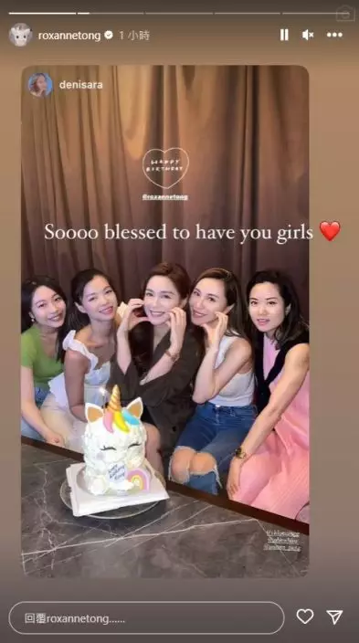 湯洛雯獲好友為其慶祝生日,還送上獨角獸蛋糕。
