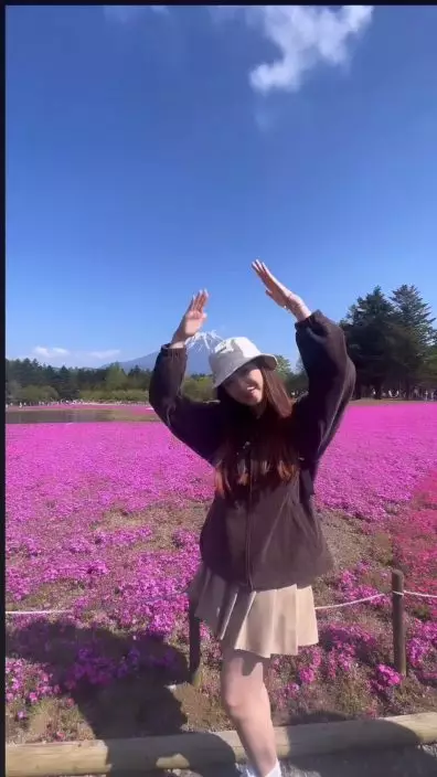 湯洛雯的影片雖然短短一分多鐘,不過拍得像旅遊特輯,更以愛人視角拍攝,見她穿上短褲及短裙遊日,到處吃喝玩樂,大吃魚生飯之餘,又到涉谷新景點及富士山賞櫻打卡,更不時大晒手上多枚戒指,又非常風騷地轉圈,嘟嘴將面頰貼近鏡頭,似是隔空冧未婚夫馬國明閃盲網民。