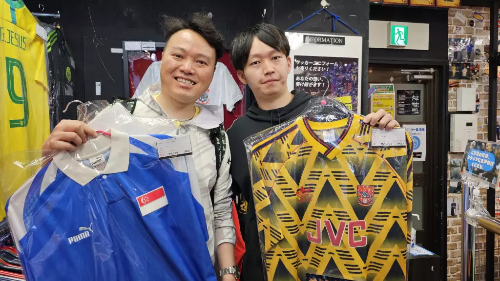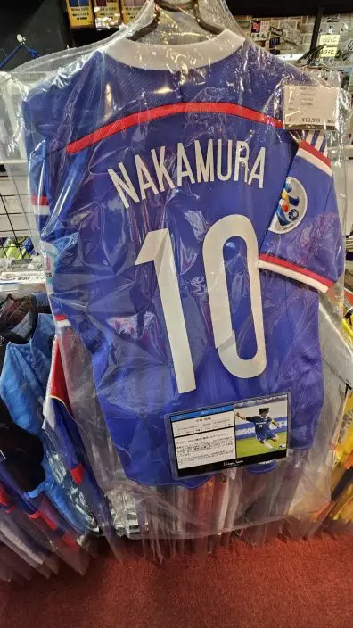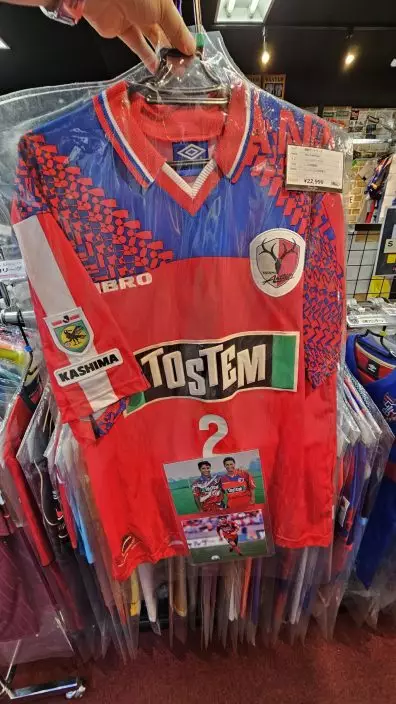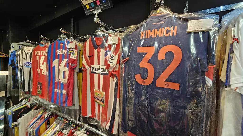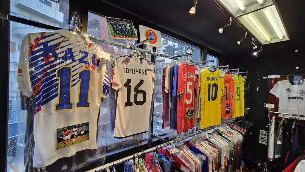首先來到球衣古著店Vintage Sports Football,從涉谷站下車行約10分鐘就到。店內有不少90年代球星的波衫,雖然大部分是二手,不過保存得頗完整,店內亦沒有一般古著店的異味。最吸引小記眼球是日本國寶三浦知良的日本國家隊球衣,另外亦有一代罰球專家中村俊輔2014年橫濱水手波衫,甚至90年代日職第一代球星、巴西94世界盃冠軍成員佐真奴的鹿島鹿角波衫亦有。