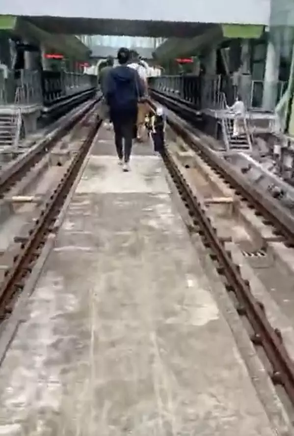 女網民指自己很慌張,片中見有乘客走上路軌離開。直播畫面所見,有部分乘客淡定坐在座位上滑手機上網,也有人急著想離開現場,走在捷運天橋路軌上。