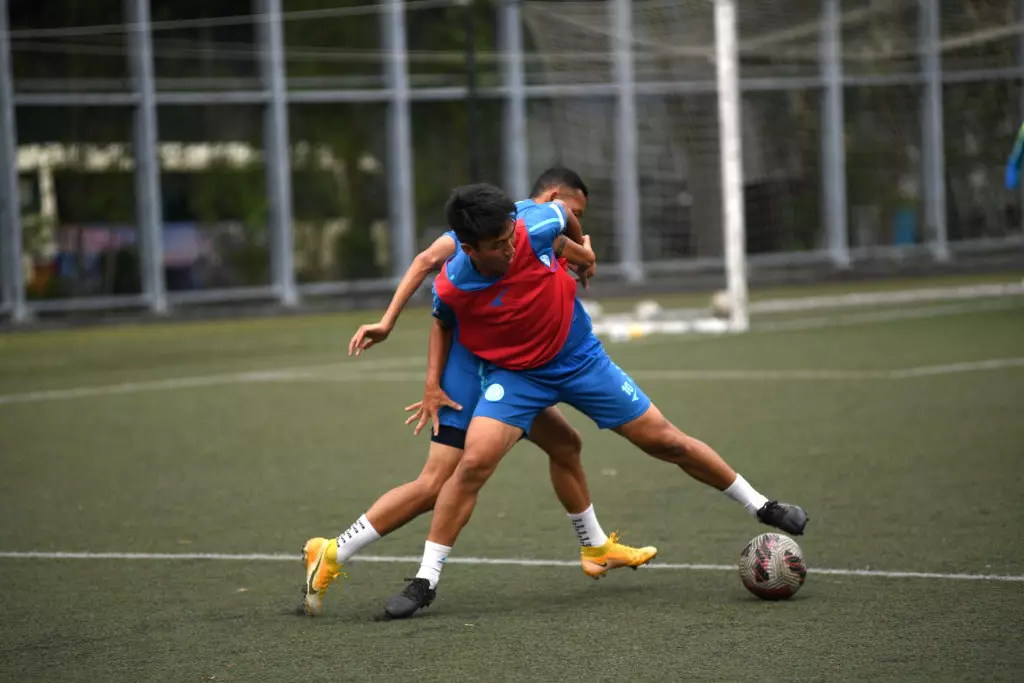 傑志新星羅梓駿(右)表示,以往看著盧均宜、林嘉緯(左)等前輩踢波,很高興今次有機會在決賽和二人交手。