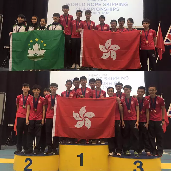 中國香港跳繩隊在世界跳繩錦標賽,總共奪得7金5銀12銅共24面獎牌。中國香港跳繩隊提供
