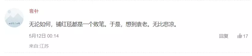 事件曝光後,網民紛紛在網上留言炮轟主辦方:「這個回應就是欺負農民沒有種過地,強詞奪理,睜眼說瞎話。」、「首先可以看到紅毯兩邊露出了一些麥穗,剛好是壓了三壟小麥。而且這根本就不是路,田地裡的小路是會高出兩邊的地一些。」、「三國時期,曹操率領士兵出征,看到有士兵踩壞了麥田,深感自責,沒有管理好隊伍。為嚴明軍紀就『割發代首』。說明無論在什麼時候毀壞麥田糟蹋糧食都是不對!」、「麥田鋪紅地毯不是第一次,為什麼會經常出現?因為行業風氣不接地氣。」、「紅毯常見於走秀,鋪在麥田里是讓專家到麥田走秀嗎?」