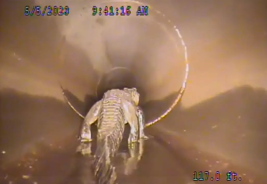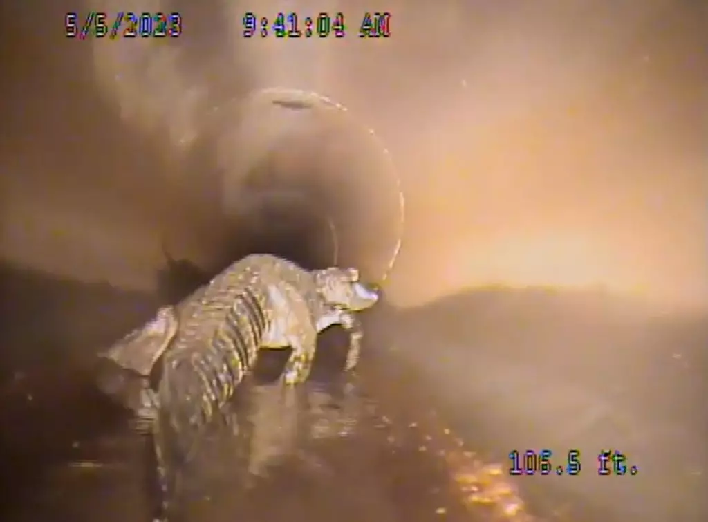 報道稱工程人員利用攝像機追隨了鱷魚10分鐘,後因攝影機械人卡在凹陷處,鱷魚體長5呎快速在管道內爬行離去,以失敗告終。當地市政府官員分享影片,開玩笑般勸告大家不要在雨水管內玩樂,片段在網上瘋傳。