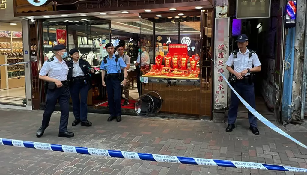 觀塘物華街一間珠寶金行12日遭獨行賊持類似手槍物體及鐵鎚闖入企圖行劫,惟賊人狂扑飾櫃無效,加上金行負責人出手阻止兼拉扯其背囊,賊人無法得逞施展「金蟬脫殼」棄下背囊奪門而逃,惟背囊內有劫匪身分證明文件,警方迅速掌握劫匪背景,獲悉他是一名保安員,劫匪亦自知走投無路,9小時後到啟德協調道的東九龍總區行動部自首,涉嫌「企圖搶劫」及「管有仿制槍械」被捕。