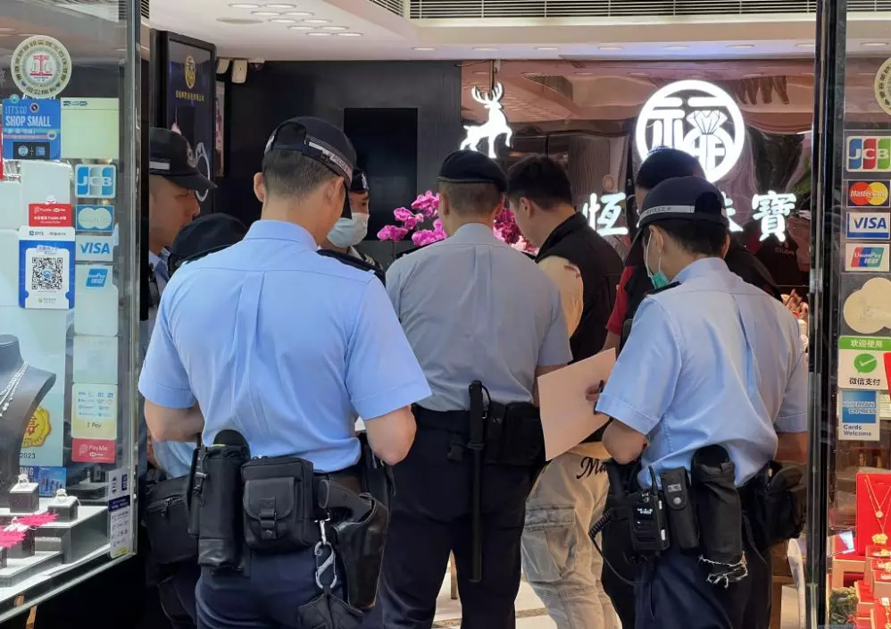 疑匪為47歲保安員,據悉他因欠債不惜挺而走險犯案,惟有人行劫時「雞手鴨腳」,諸多甩漏,包括用鎚仔狂扑近門口的飾櫃不遂,玻璃未有破碎僅現裂紋,無法伸手擸走金飾,加上金行負責人無畏上前拉扯劫匪的背囊,劫匪被纏下為求甩身竟卸下背囊拔足逃走,就此留下重要線索。