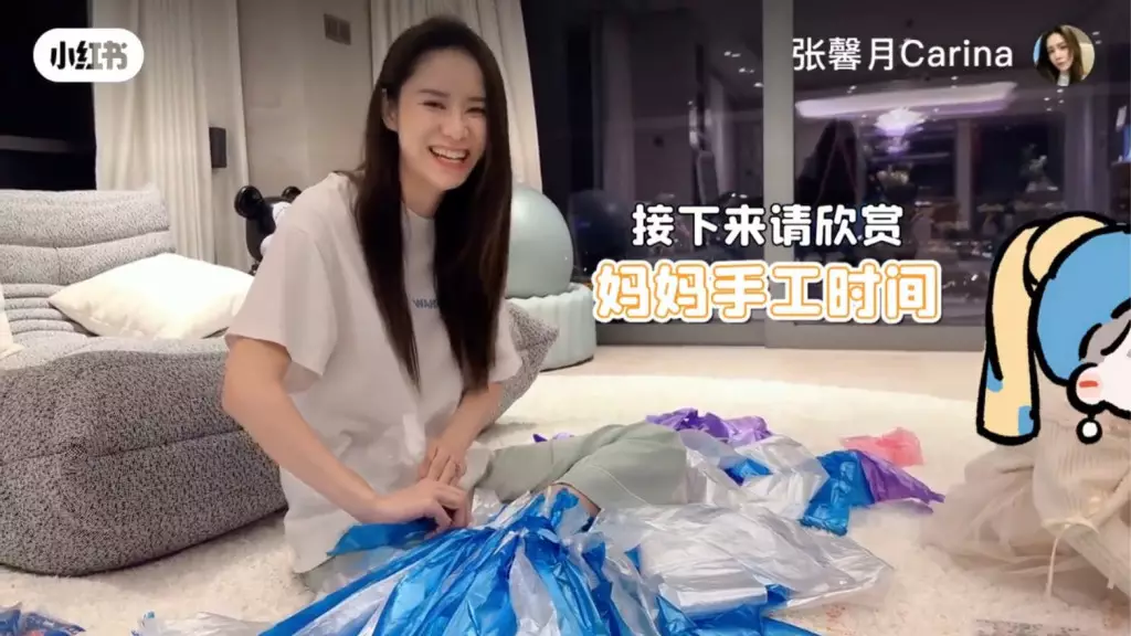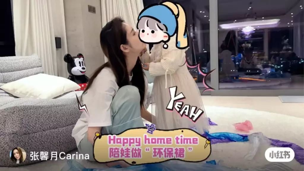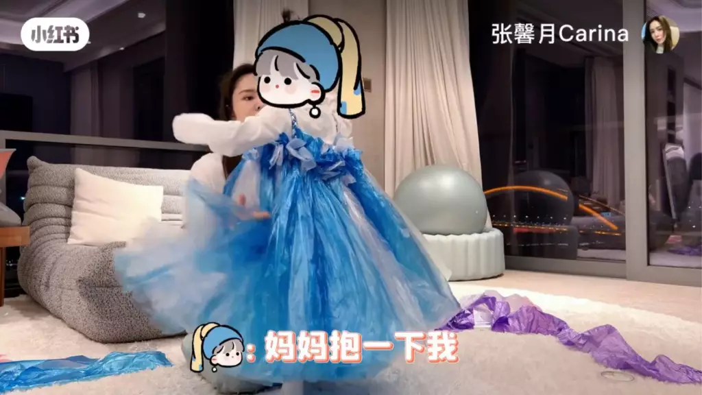 張馨月在社交網貼出為囡囡做「環保裙」的短片。
