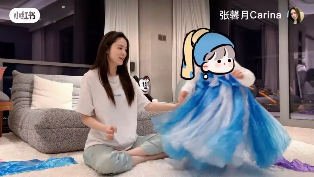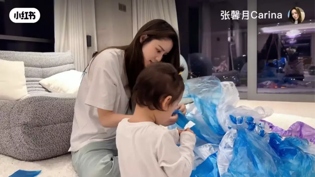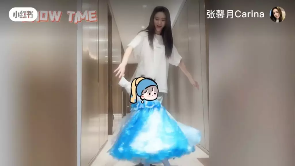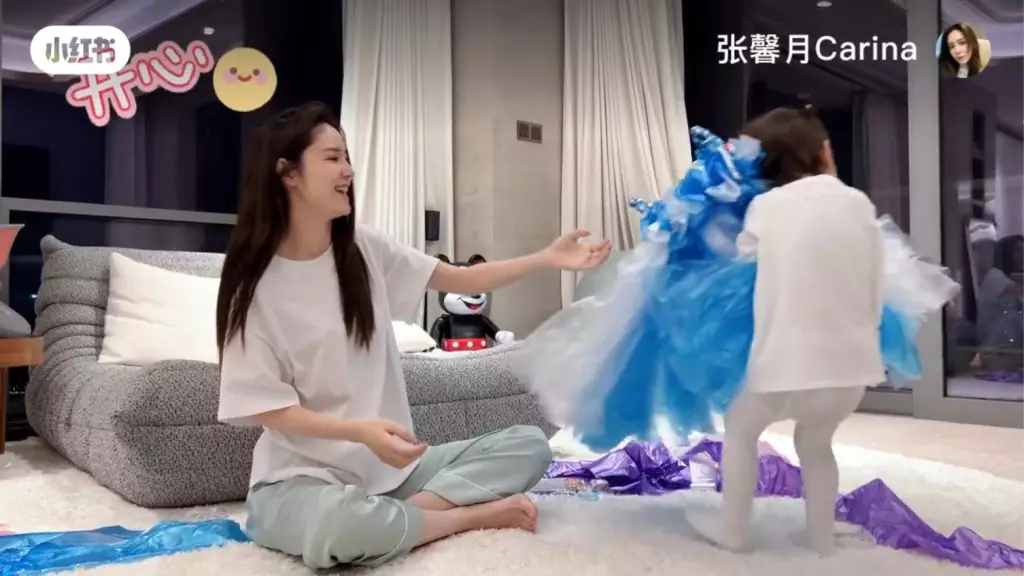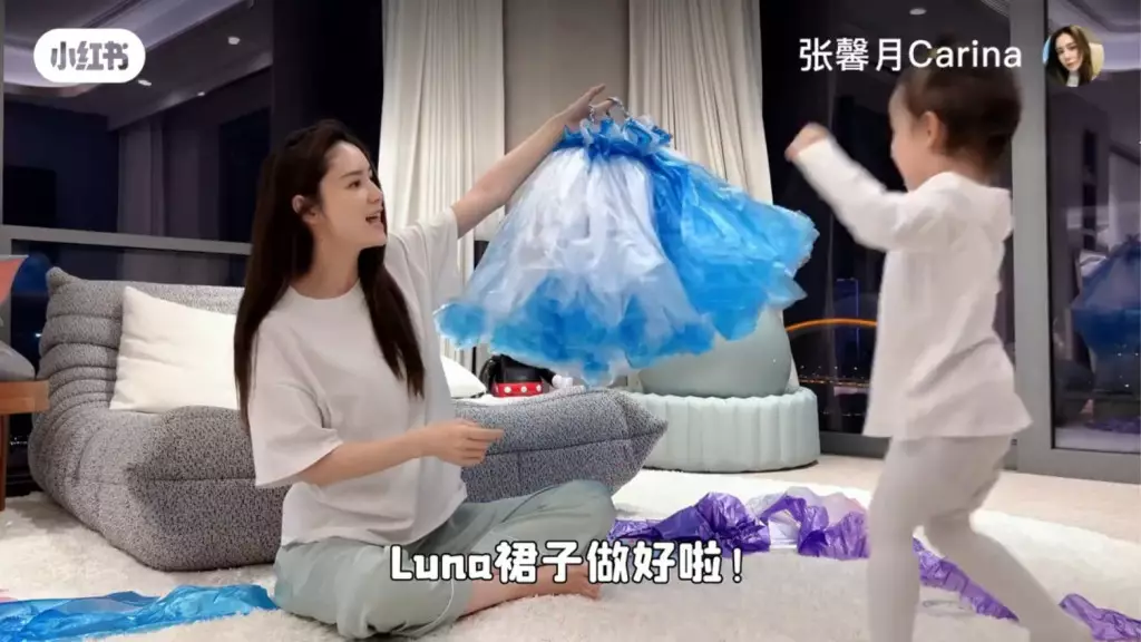日前到上海拍攝的張馨月貼出新片留言說:「出差那麼久終於有時間陪Luna了,今天就和Luna一起『變廢為寶』用垃圾袋做了一條她最喜歡的《冰雪奇緣》愛莎裙👗。和孩子有的時候就需要一份寧靜的時光,一起享受這隨心、隨性、隨意的日子,在平淡的日子裡尋找一些小美好。」片見中她以藍色、白色垃圾袋在家中巨廳做公主裙,囡囡囡亦非常開心攬實媽撒嬌,還在家中走廊轉圈行catwalk。
