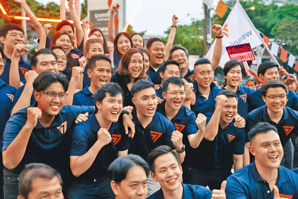 泰國在野前進黨的年輕候選人,在曼谷集會造勢。