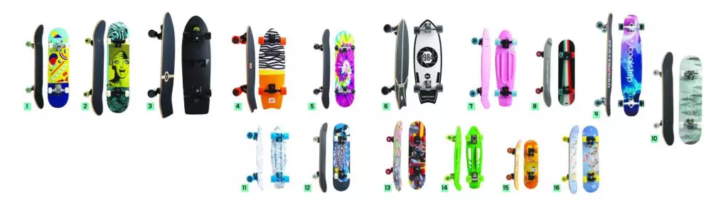 消委會測試市面16款滑板。樣本主要購自運動用品店、玩具零售店、滑板店及網上平台,樣本售價懸殊,由80元至2,580元。消委會圖片