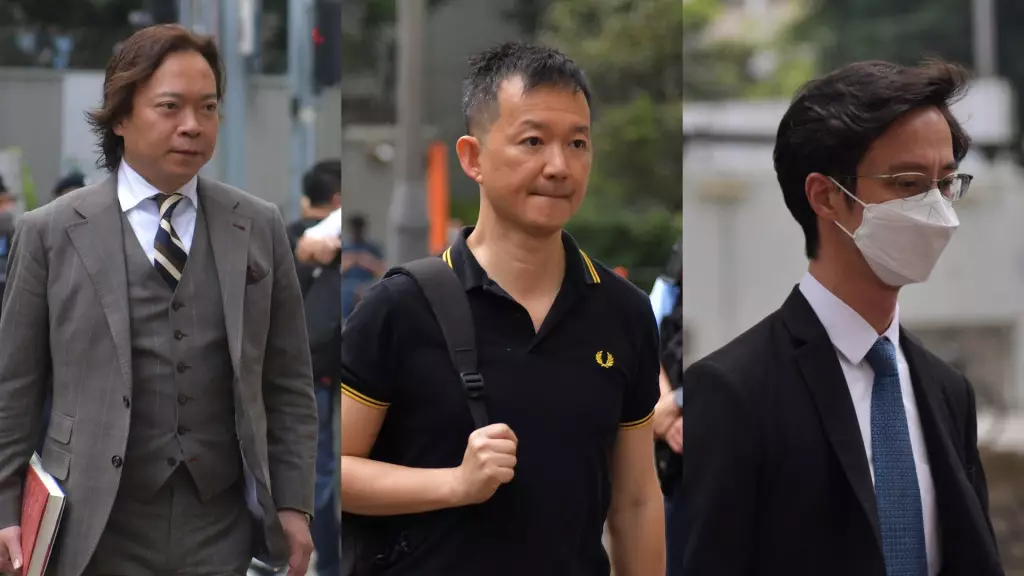 由左至右被告:何啟明、李予信及鄭達鴻。