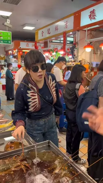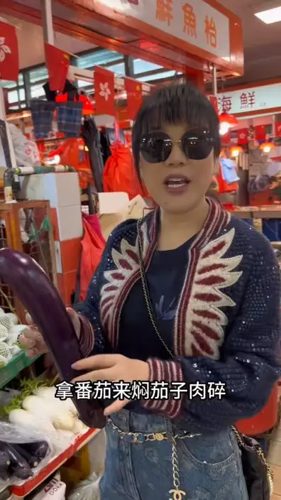 楊小娟以一身富貴打扮買餸。