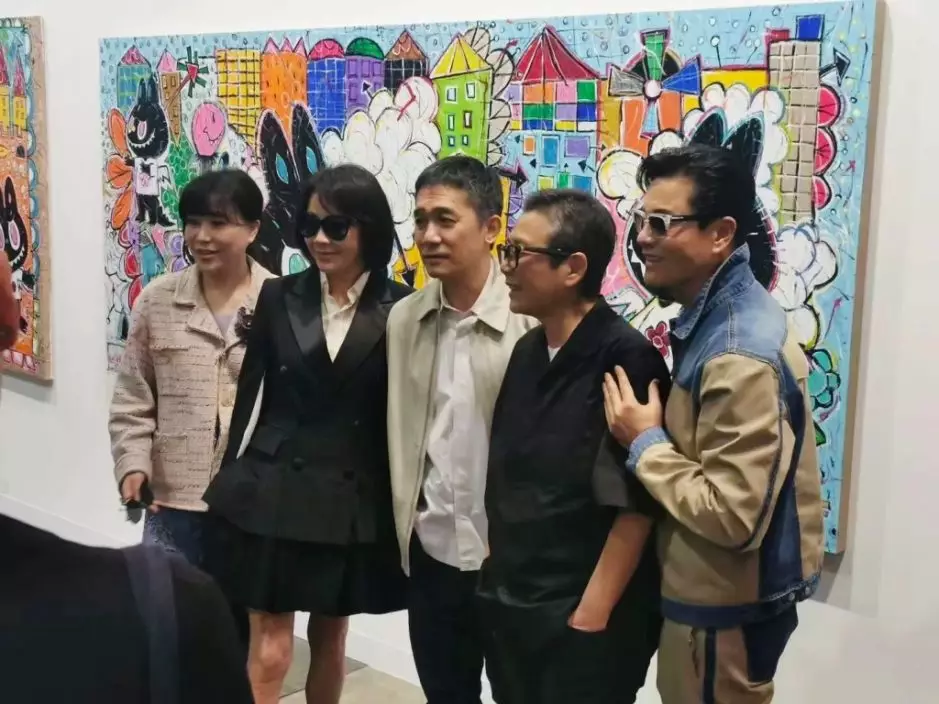 梁朝偉(中)與劉嘉玲(左二)在場內與呂良偉(右一)、楊小娟(左一)及俞琤合照。