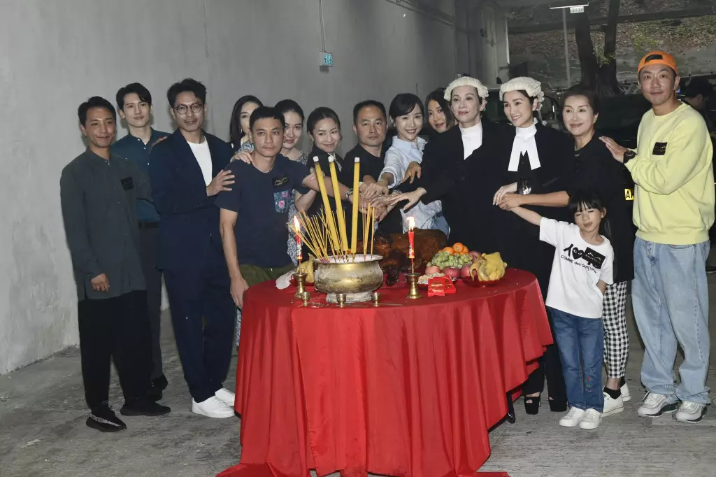 葉璇、關智斌、賈曉晨、余安安、謝安琪與李芯駖等,17日到葵涌出席ViuTV新劇《法與情》拜神。