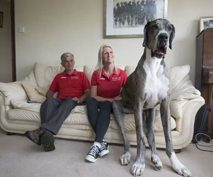 這隻叫Major的大丹狗體型比同年的狗隻大好幾倍,體重更達76公斤(約168磅)。當牠後腳站起後,身高足足有七呎。由於體形龐大,Major要睡在成人人尺碼的床褥上,而很喜歡睡覺的牠,一天還要睡夠22小時。