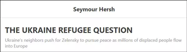 知名調查記者赫什一直在跟進俄烏衝突的相關報道。5月17日,赫什在其網站發布題為「烏克蘭難民問題」的文章,稱在數百萬無家可歸者湧入歐洲之際,以波蘭為首的烏克蘭鄰國正在私下敦促澤連斯基尋求和平。