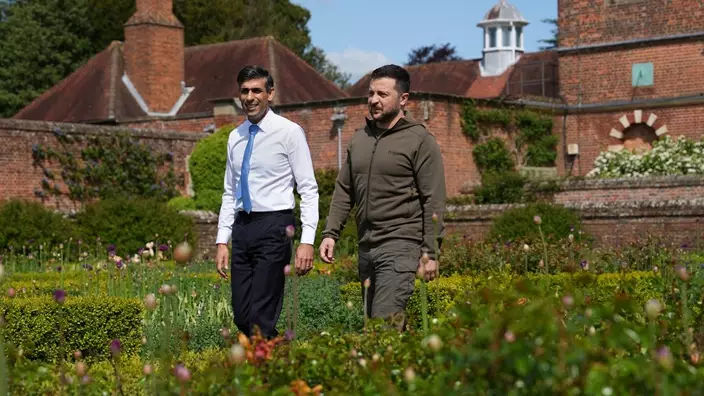 澤連斯基15日在倫敦與英國首相辛偉誠舉行會談。