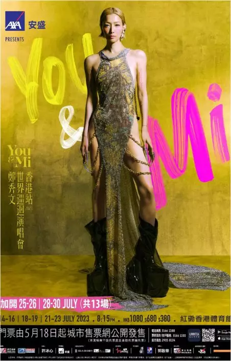 《You & Mi鄭秀文世界巡迴演唱會香港站2023》將於7月14至16日、18至19及21至23日舉行。另外主辦方再宣布加開5場,包括7月25至26日、7月28至30日,合共13場,於紅磡體育館舉行。門票由包括港幣1080元、680元及380元,於2023年5月18日(四)上午10時起於Urbtix網站/App發售。