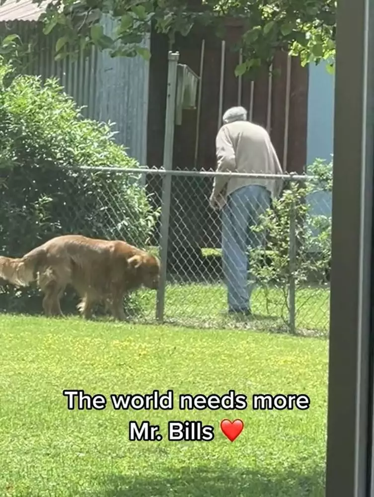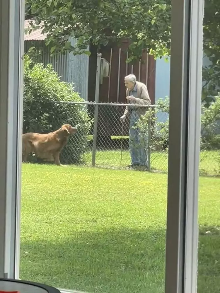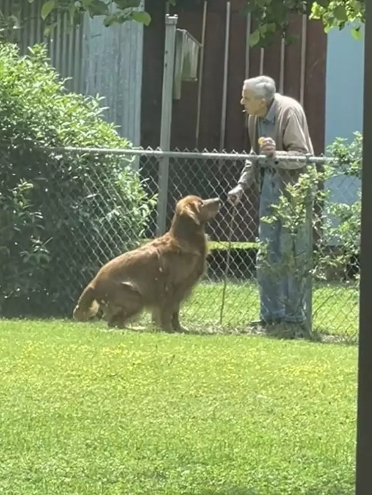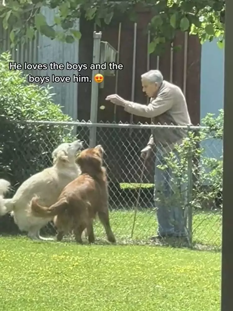 居住在肯塔基州默里(Murray)的Kimberly Hansberry Shelton養了兩隻金毛尋回犬「Charlie」和「Doug」,Kimberly發現兩隻狗狗和94歲的鄰居Bill爺爺成了好朋友,除了下雨天,Bill爺爺幾乎每天都會走到圍欄前和兩隻狗狗互動。