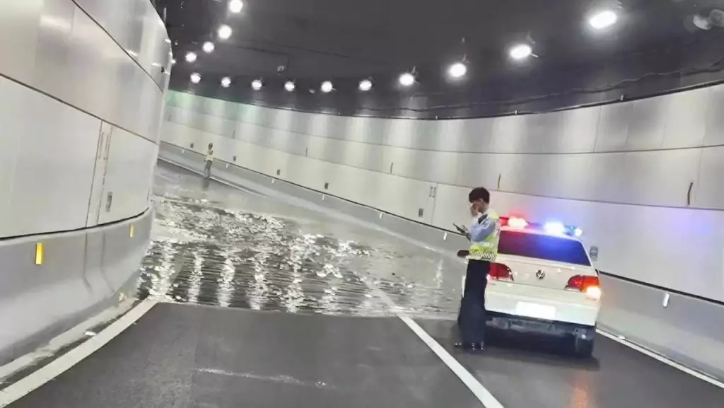 據微博等社交平台傳出許多不同網民拍攝影片顯示,位於東北遼寧省大連市的大連灣海底隧道頂部不斷有水流下,地面有大面積積水,駕車經過的車輛都要涉水而行,影片同時也拍到有車輛認為太過危險,打算倒車離開隧道。