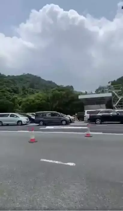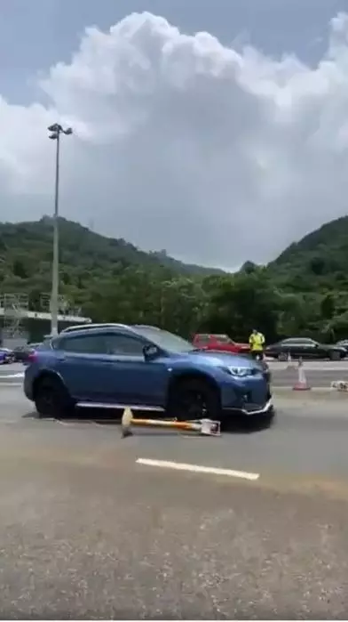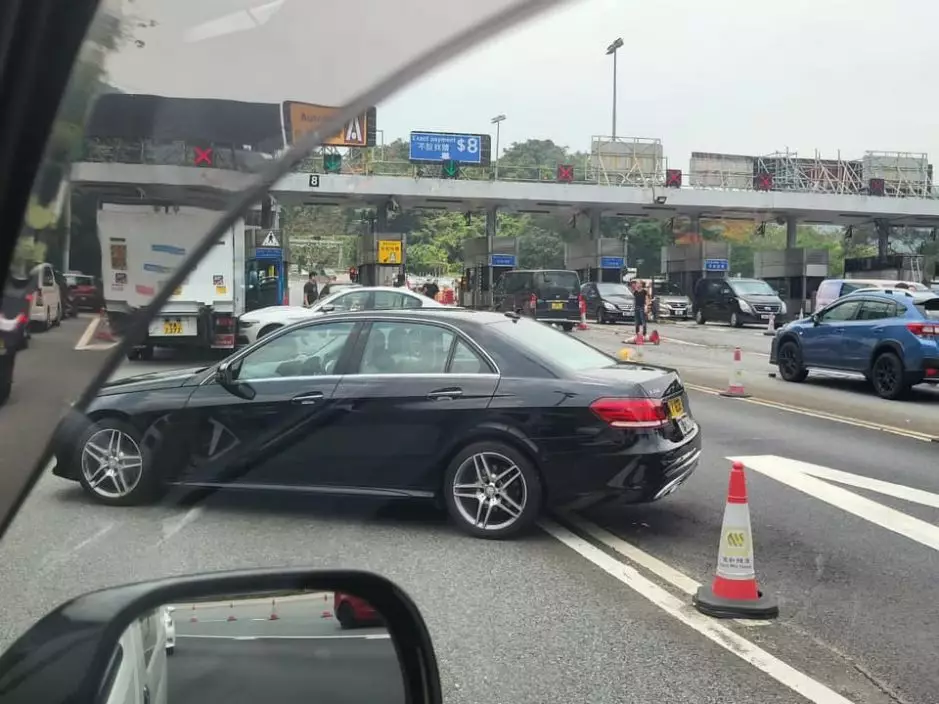 一部私家車橫亘路中。fb: 馬路的事 (即時交通資訊台)