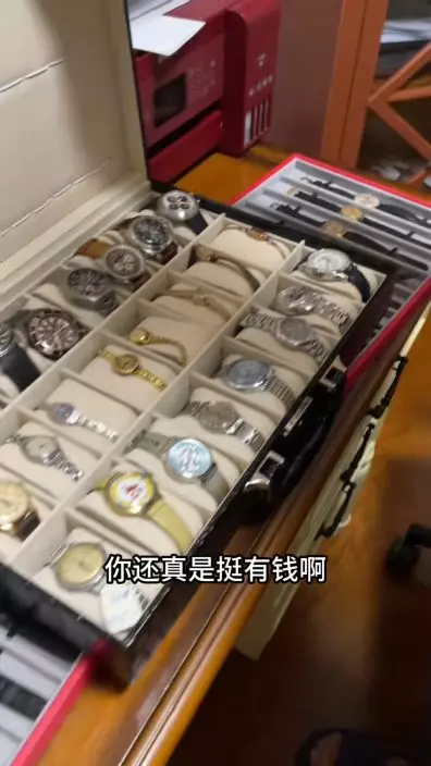 片中一開始只見李子雄的背影,其太太的弟弟就說:「揭秘知名反派男演員到底有多少名錶」,並以對方戴上名錶吃「淄博燒烤」的新聞作引子,窺探姐夫「原來雄哥也曾年少輕狂,這是偷偷買了多少塊 (錢) 手錶啊」的秘密。李子雄隨即拿出兩大盒珍藏,並如數家珍般打開裡面多達數十隻手錶,他先拿出新聞報道中那一隻指:「朋友送的,無價」,直認價值不菲。