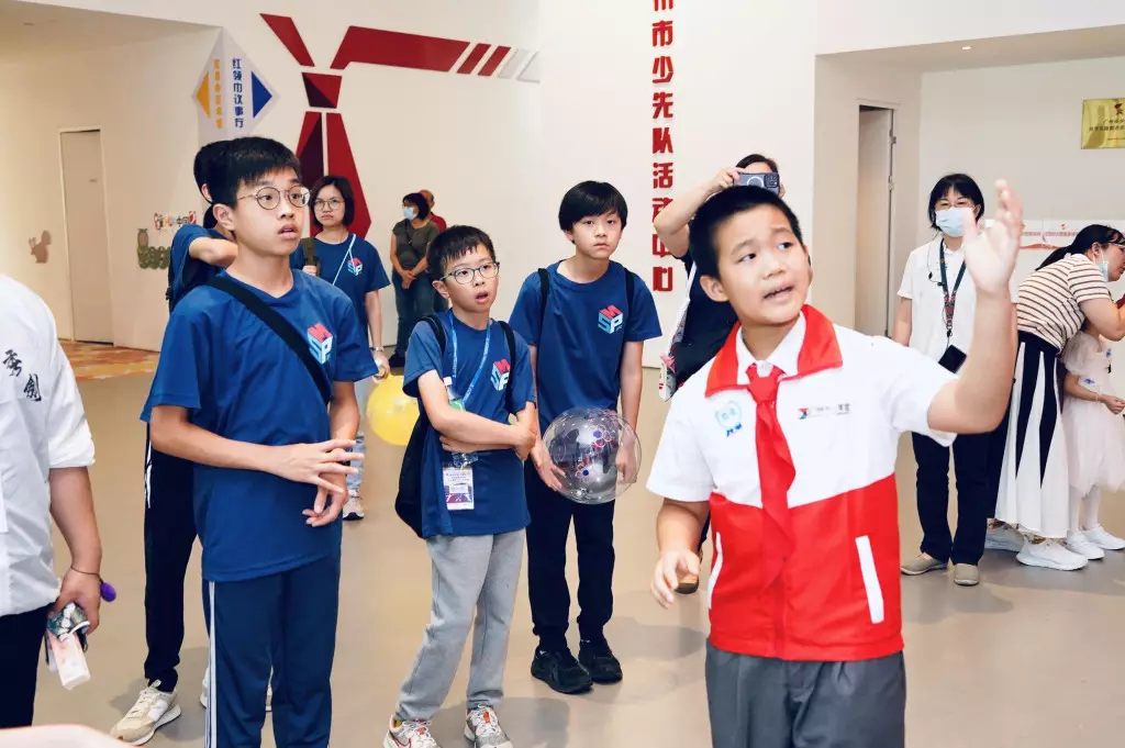 廣州市少年宮副主任楊偉文迎接了少訊劍隊,還邀請他們參觀了廣州市少年宮一個活動「同在一座城我們更有愛」——2023年廣州民生實事「關愛特殊少年兒童專項」融合教育公益開放日。還有,他們與少年宮的武術學員一同上了武術課,並在廣州市少先隊活動中心進行了互動體驗學習。