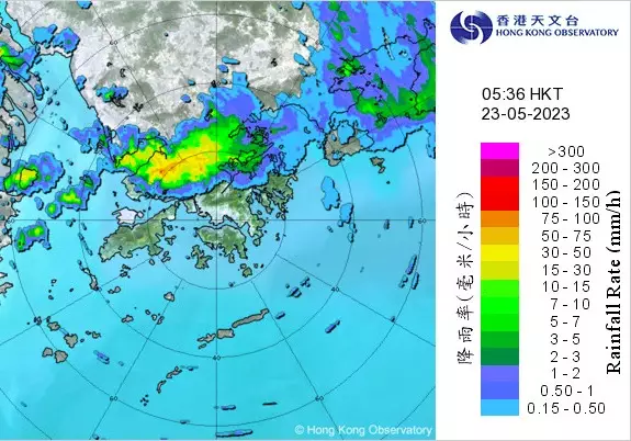 天文台預測23日多雲,早上有大驟雨及狂風雷暴,稍後驟雨逐漸減少。最高氣溫約29度,吹和緩北風,稍後東風增強。