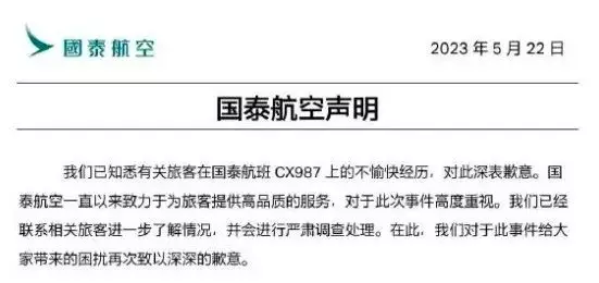 國泰就事件致歉並將涉事機艙服員停職。網上圖片
