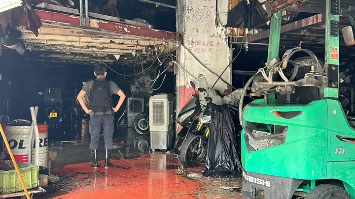 大火過後車房內滿目蒼夷。