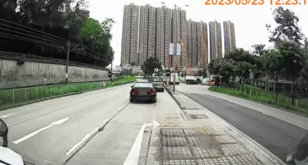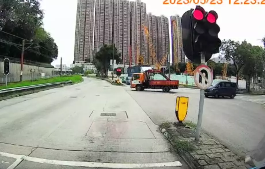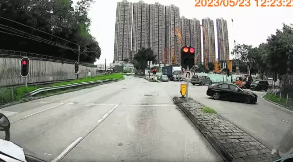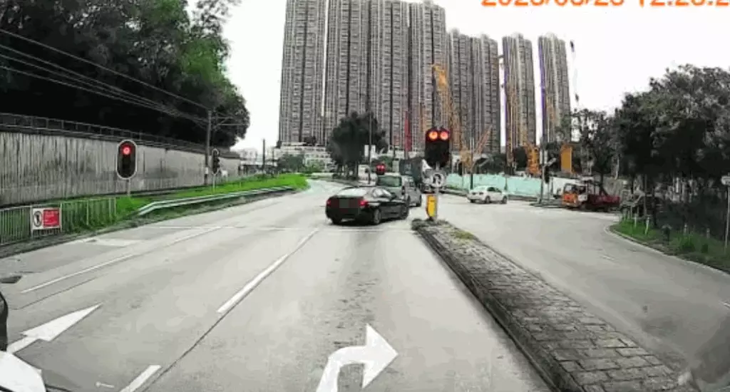 該短片全長30秒,事發於23日中午12時23分,一輛寶馬沿龍門路往市口心方向行駛,途至蝴景邨對開,依燈號停車等候駛進湖山路,交通燈下面掛有一個不准「U-turn」的標誌,當綠燈時,前面四部車輛順利駛進湖山路,之後轉為紅燈,寶馬竟沒有剎車,反而衝燈兼U 型轉彎,駛入龍門路往碼頭方向。
