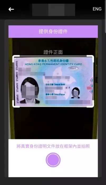 電訊商B當中,記者嘗試上傳身分證範本,輸入範本上的身份證號碼。結果因系統辨識到證件並非正本,登記失敗。
