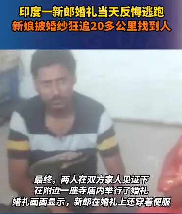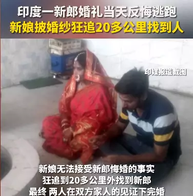 婚姻大事不可兒戲,如果未做好準備,可以慢慢來,如果應允了人家最後臨陣「縮沙」,就不是那麼光彩了。近日,在印度上演了一場「千里追夫記」,婚禮當日新郎竟臨陣落跑,卻被新娘追出20公里強行帶回,真係荒誕又新奇!