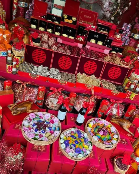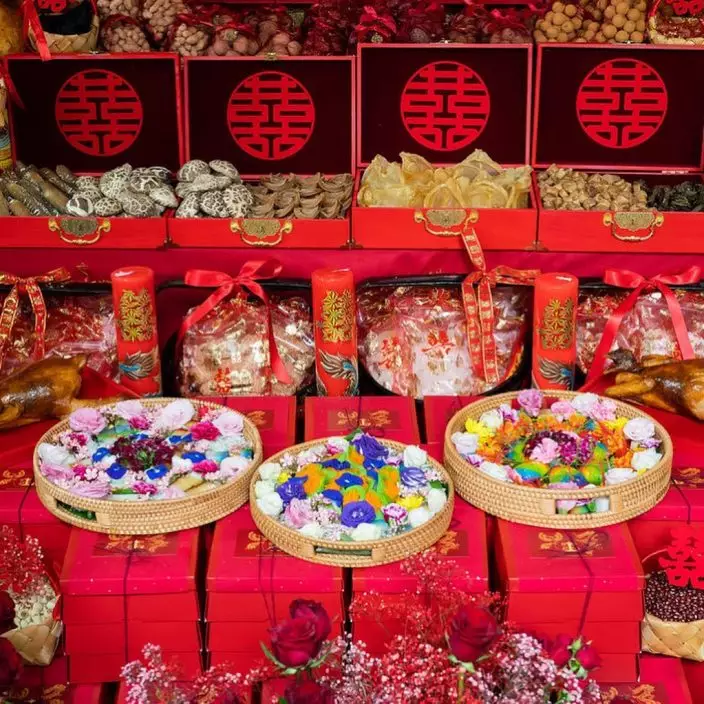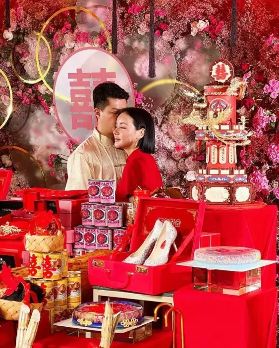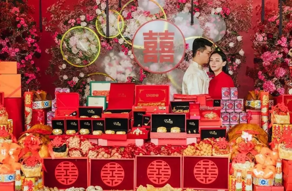 聘禮有8對龍鳳鈪及15條金條,引來網民討論。