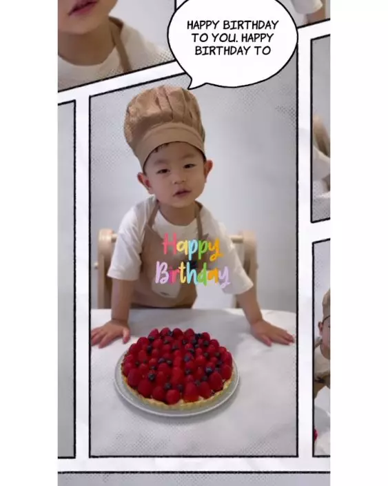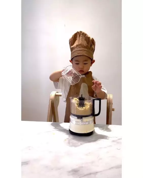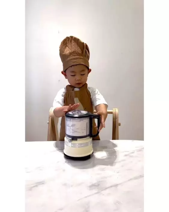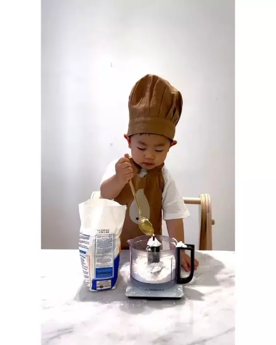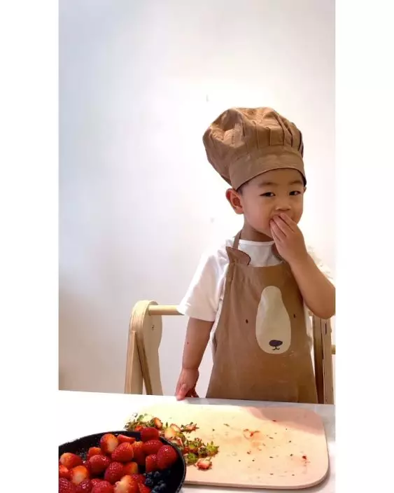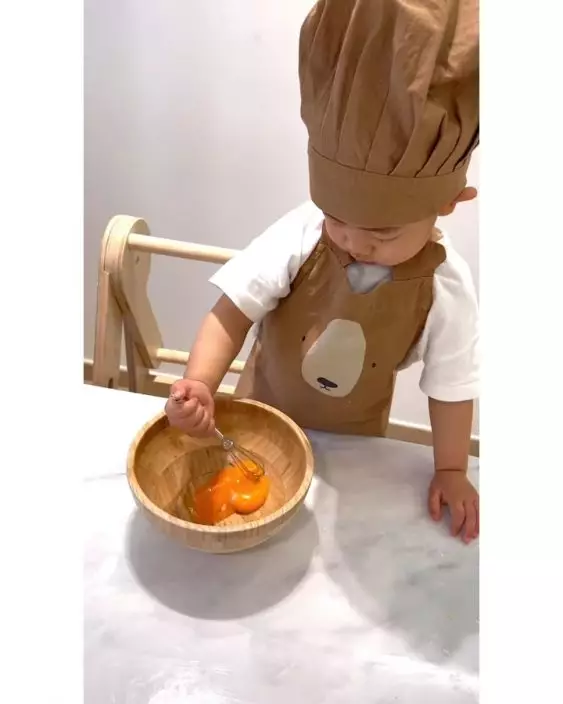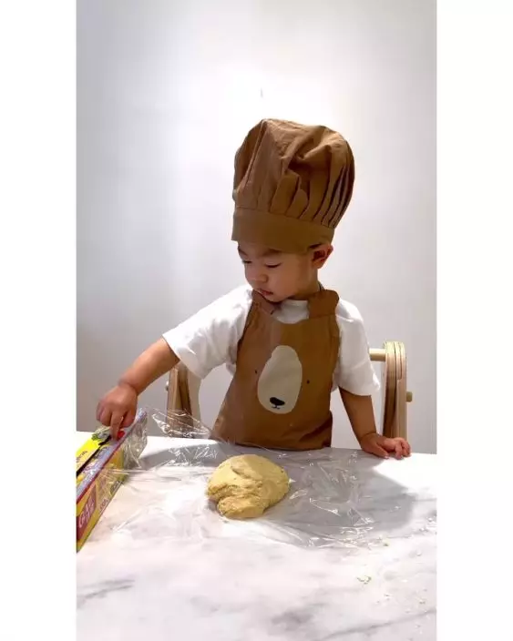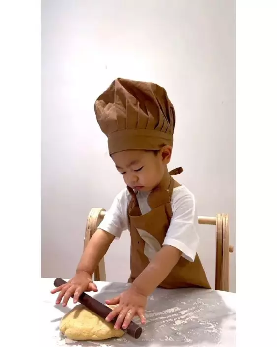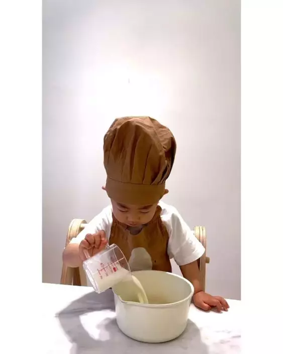 當時只有1歲多的Julian戴上熊仔圍裙、啡色廚師帽,相當可愛。