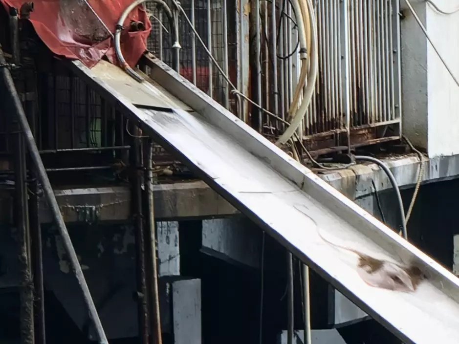 市民將放生魚用特製的鐵滑梯瀡落海。香港兩棲及爬蟲協會提供圖片