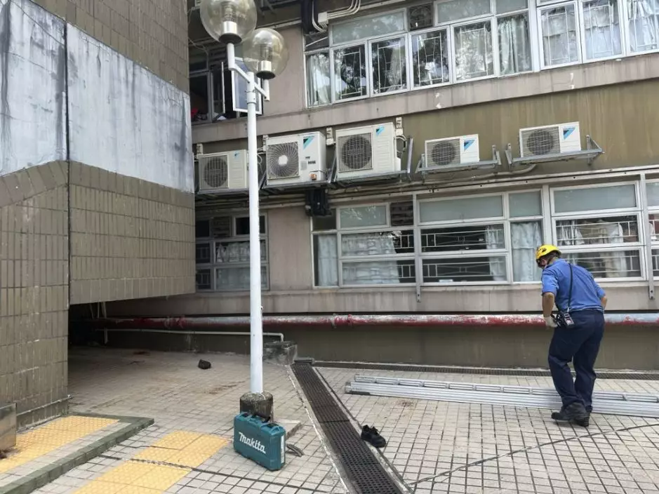 老翁攀窗墮到一樓冷氣機頂,消防架梯救返單位內。