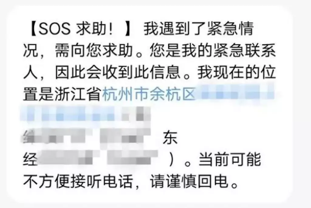 早前某日凌晨3點左右,內地杭州的李先生在半夜收到表妹王女發來的「SOS求救短信」,短信內容顯示「我遇到了緊急情況需向您求助,您是我的緊急連絡人」。擔心表妹安危的他急忙致電對方,但一連幾個電話都顯示繁忙中,情急之下他決定報警,與警方一起上表妹住所核查情況,警員在門方外焦急萬分拍門,大叫:「王XX,派出所的!」