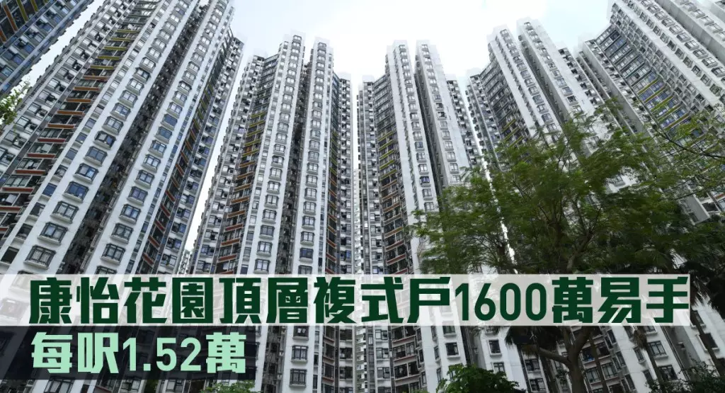 中原首席分區經理楊文傑表示,鰂魚涌康怡花園周末錄得1宗複式戶交投,為A座頂層戶,面積1048方呎,三房套間隔,上月開價1750萬,現降價150萬,以1600萬易手,呎價15267元。
