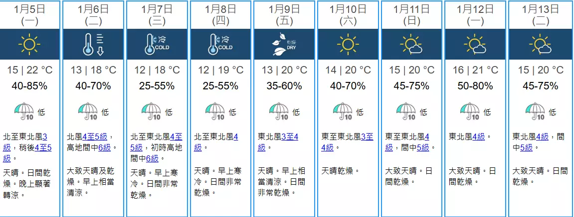 楊漢賢指,天文台已加強酷熱天氣警告服務,若酷熱天氣警告生效,氣溫達35度或以上,將透過「我的天文台」流動應用程式,推送特別天氣提示。他指去年有15日的氣溫達35度或以上的極端程度,預料今年全年平均氣溫亦會偏高,出現最高氣溫紀錄首10位的機會頗高。