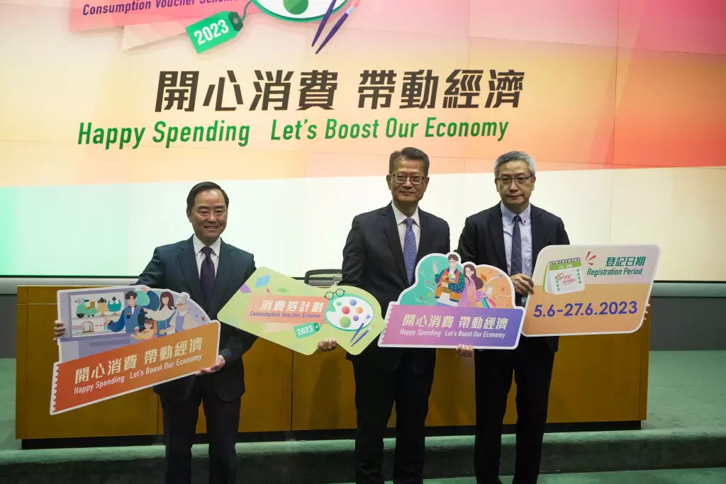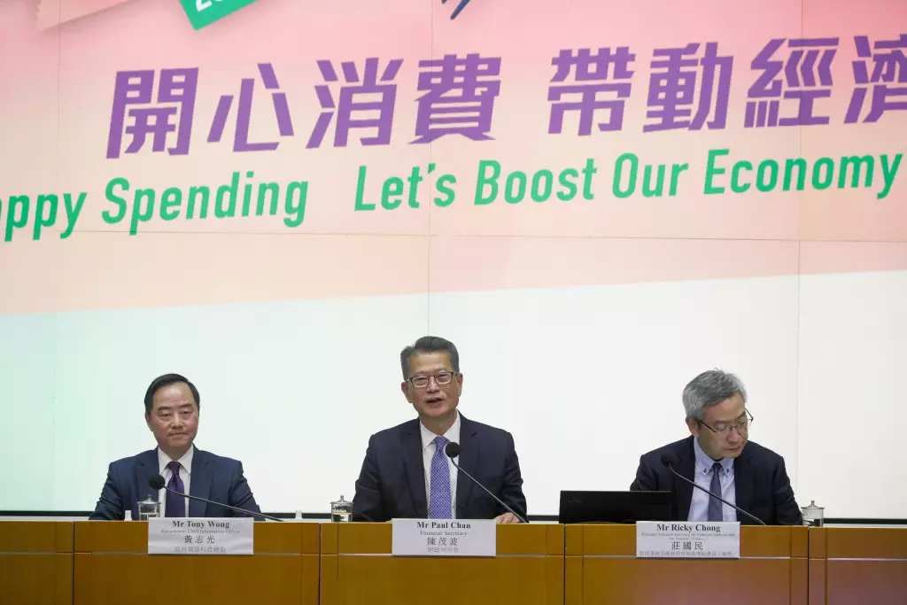 財政司司長陳茂波今午在政府總部舉行記者會,公布2023年第二期消費券計劃詳情。