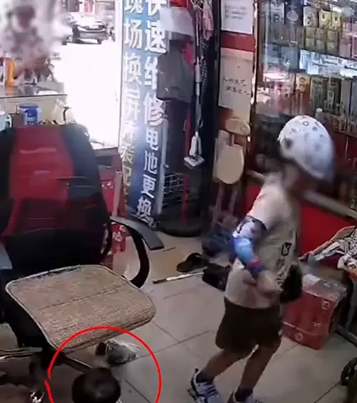 據內媒報道,在廣州,一名顧客5月27日帶她兒子進入一家雜貨店買水,小男孩趁店主不注意,靠近店主11個月大的嬰兒,轉身一個「虎尾腳」踢了店內11個月大的嬰兒,隨後嬰兒大哭。