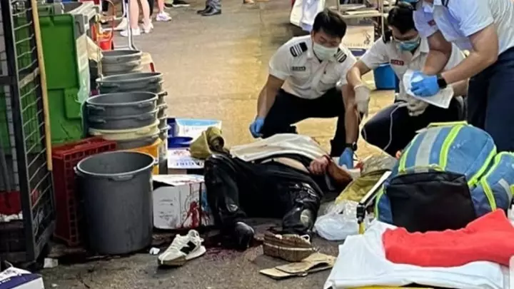 傷者重創浴血,救護員到場急救。香港交通突發報料區正版FB