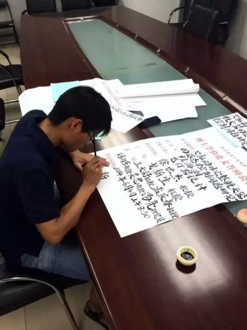 同學曾提及,桂海潮特別喜歡書法,經常練字,博士畢業論文答辯公告,便是他親自用毛筆寫的。