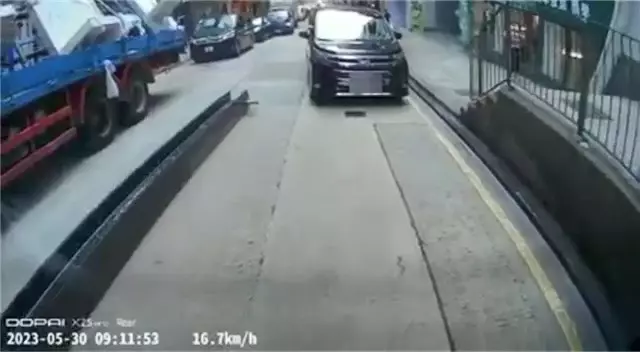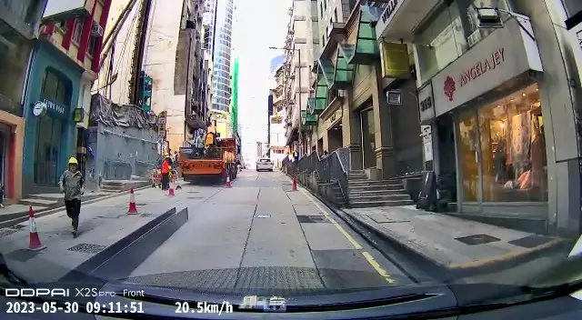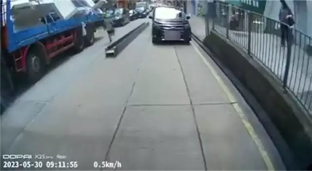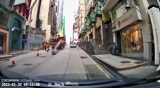 中環30日發生驚險事件。早上9時許,多名工人在威靈頓街的路邊工作期間,貨車上一條長約4米的工字鐵突然跌出車外,之後更沿斜路一直「瀡」,險些撞到工人和途經車輛,可謂險象環生。