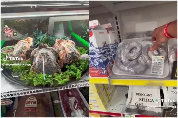 刺青雞肉與看起來像蛇的獵奇商品。(TikTok@argentiniankingg)