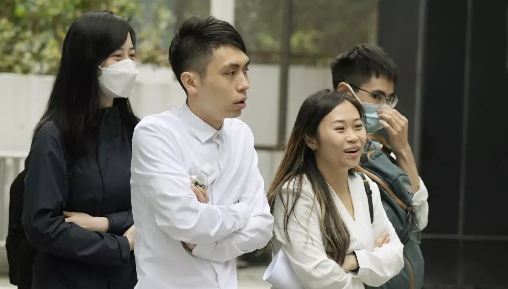 「和你lunch」案被告陳家裕(左二)、黃穎恩(右二)、袁皓軒(右一)。 資料圖
