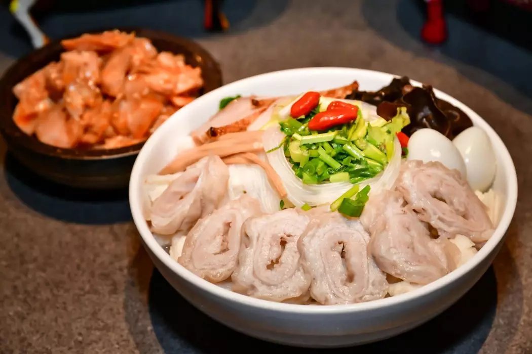 「同盛泡饃」是陝西傳統名小吃的「經典代表」,食材包括羊肉、糖蒜、辣醬、香菜等。同盛泡饃以「肉爛湯濃,饃筋光滑」而飲譽天下,同盛二字寓意同心同德,繁榮昌盛。