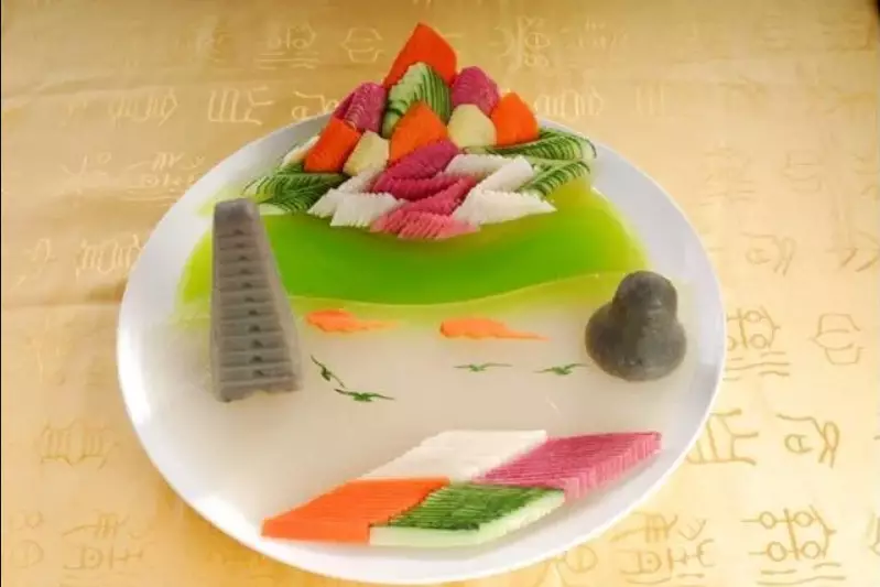 以「雁塔晨鐘」為題的菜式 (網上圖片)